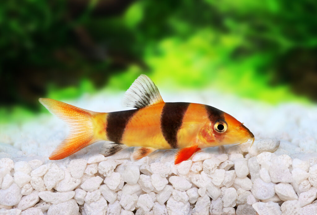 La botia payaso luce un rico contraste de colores que la convierte en una auténtica estrella del acuario. Este pez procedente de Indonesia y de las aguas dulces del sureste asiático se instaló en la acuariofilia hace tiempo. Un rasgo típico son las rayas casi atigradas de color naranja y negro, y las llamativas espinas de los ojos.