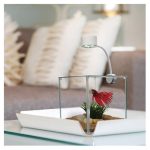 La base del pedestal protege las superficies de daños. El kit viene completo con un acuario de cubos de vidrio de 3.4 L (0.9 gal EE.UU.) con cubierta, base y luz LED ultramoderna con clip.